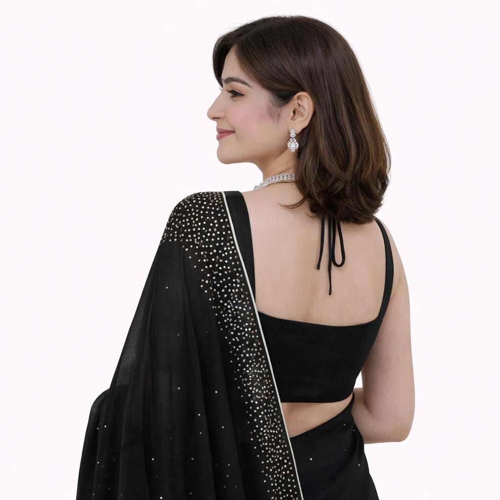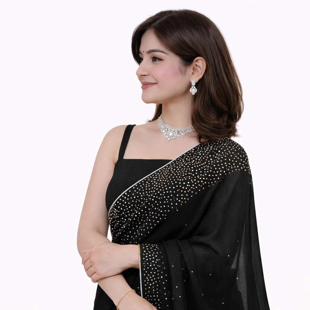 Name: Women's Hot Fixing Poly Georgette Saree with Unstitched Blouse Piece